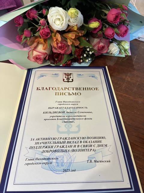 Глава Находкинского городского округа Тимур Магинский лично поблагодарил волонтёров за их неоценимый труд и вклад в жизнь города. Для нас стала большой честью и радостью, что в числе отмеченных организаций был и наш фонд «Забота» 🎉