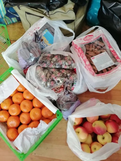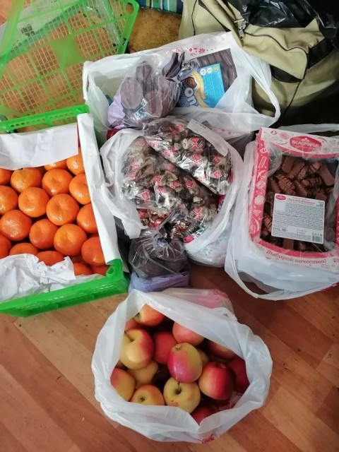 Они привезли целое праздничное угощение: мандарины, яблоки, конфеты, печенье и пряники 🍊🍎🍬